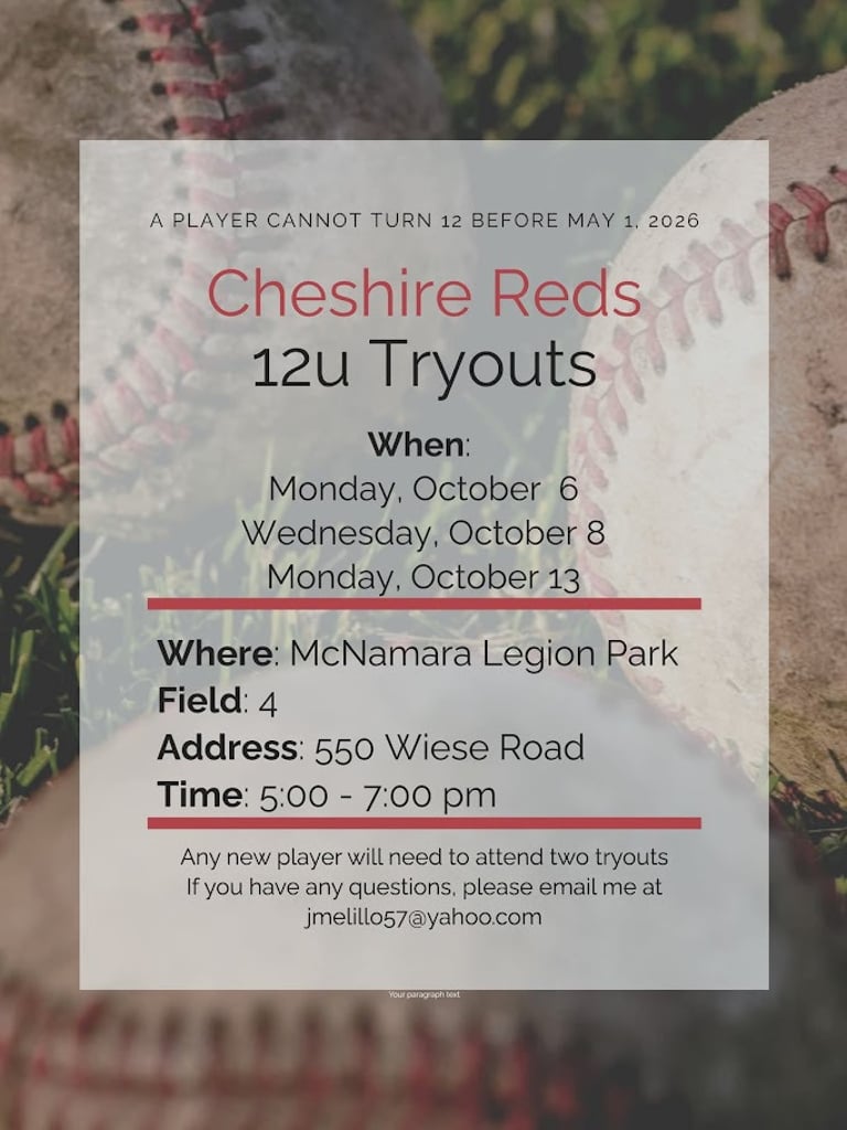 Reds Travel Baseball Tryouts 8U-13U